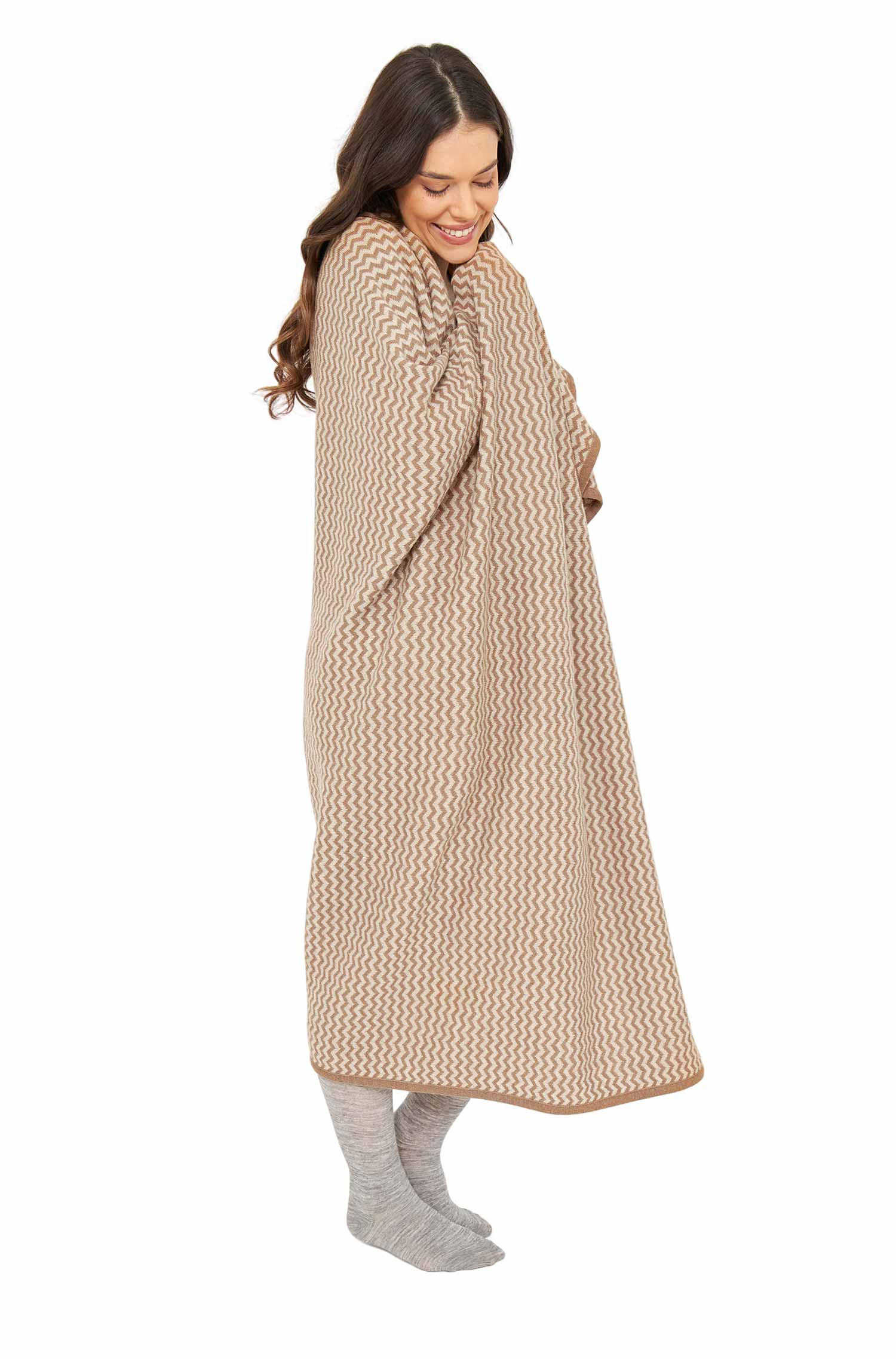 - Wende-Strickdecke mit feinem Strukturmuster in ruhigen Naturtönen